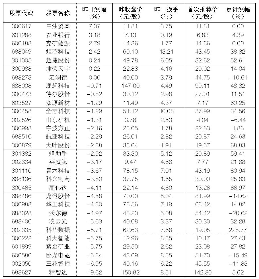 大众30指数成份股中,14日逆市上涨的是农业银行、炬芯科技、超捷股份、津荣天宇,涨幅分别为3.18%、2.42%、0.24%、0.22%;跌幅榜上,精智达、三花智控、工业富联、卧龙电驱等跌幅居前。